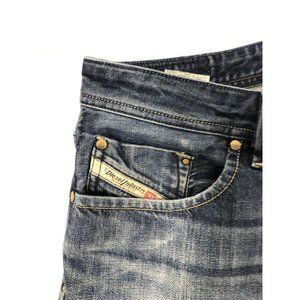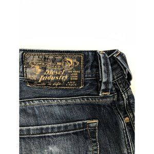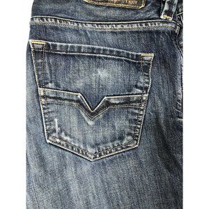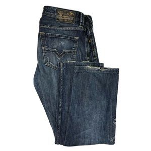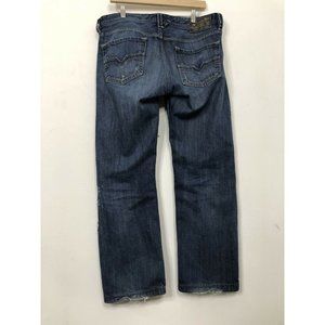 Diesel Industry Larkee Mens 34x29 Hemmed Blue Denim Jeans Straight Button Fly