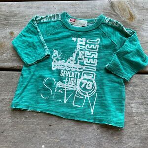 Diesel Infant Boys Shirt Size 3 Months Teal Long Sleeve Top Graphic Print NEW