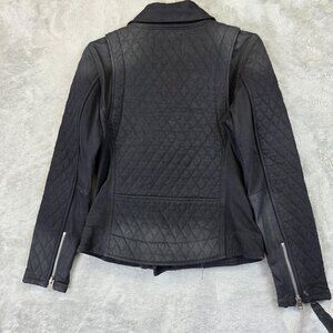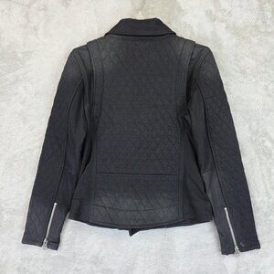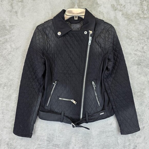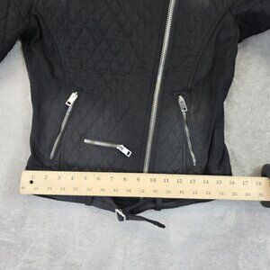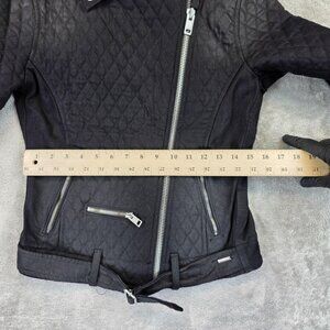 Diesel Jacket Womens XS Black Quilted Moto Biker Asymmetrical Zip Belted