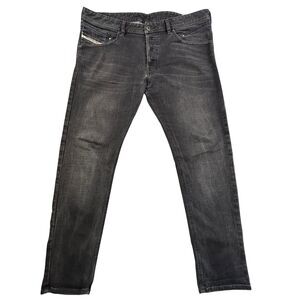 Diesel Jeans Men 36x29 Black Belther Slim Tapered Stretch Button Fly Whiskering