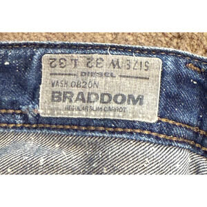 Diesel Jeans Mens Braddom Size 32X28.5 Medium Wash Reg Slim Carrot Faded 0820N