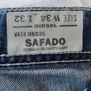 Diesel Jeans Safado 34x32 Regular Slim Straight Stretch Button Fly Wash 0835S