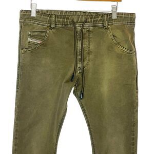 Diesel KROOLEY-NE Jeans Men’s 28 Green Brown Drawstring Slash Pockets Zip Fly