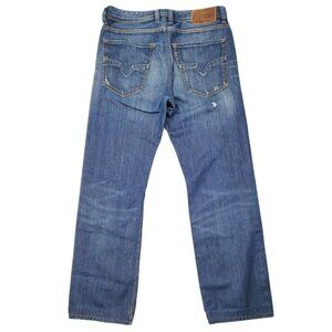 Diesel Industry Larkee Relaxed Comfort Straight distressed denim jeans pants with button fly, labeled 31x30 with actual specs of 32x27. I've included exact measurements, so you'll know if this fits you or not. Ships safely in a sealed polymailer :)