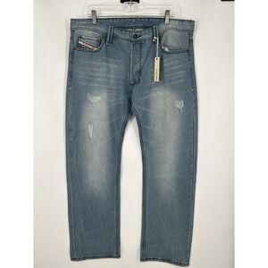 Diesel Larkee Straight Leg Regular Fit Medium Wash Distressed Jeans Size 38x34