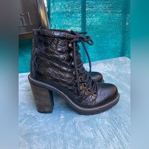 Diesel Leather Hiker Tekny Bootie Black Faux Croc Block Heel Womens