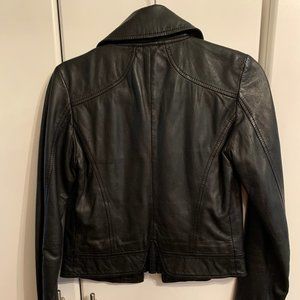 100% Lamb Leather, Black, body lining is 100% cotton, perfect condition, button up