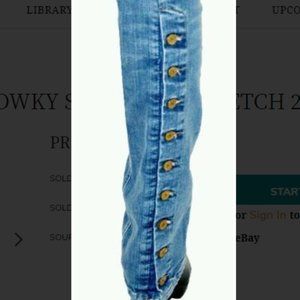 Excellent pre-owned condition. Features include : • A unique cut with 19 buttons! They are constructed with a zipper closure with button and then feature 9 other buttons up the back of each calf. •The cut of the thigh into the calf has a seam on both sides that allows the rear calf buttons to be undone. •Straight leg, low waist cut. •A stretch fit