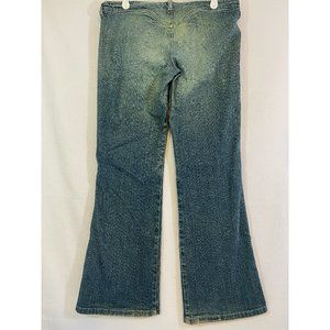 These jeans are in GREAT used condition with light discoloration and fraying at the back ankles (see close-up photos).