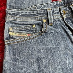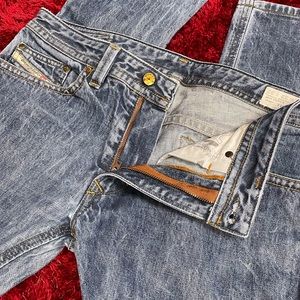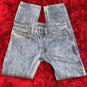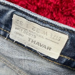 Diesel skinny jeans in a faded blue. Features classic stitching and back pockets. Ideal for everyday style.