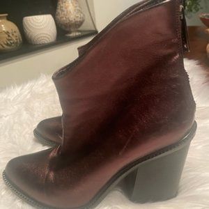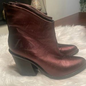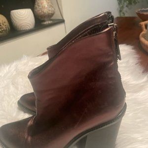 Step out in style with these Diesel metallic brown/copper leather ankle boots! Featuring a back zipper and 3" block heels, they’re perfect for everyday wear or dressing up. Women’s size 39. Light scratches—see photos for details. Pre-owned with normal signs of wear, no major damage. Smoke-free, pet-friendly home. Offers welcome!