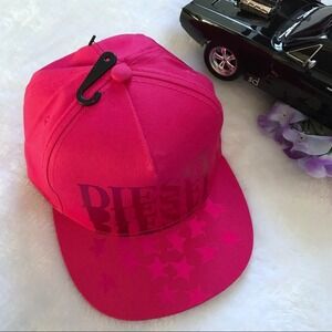 NWT Hot Pink Hat for Girls Size One Size (8-16). Adjustable strap. “Diesel” and stars on front. Pictures are part of description.