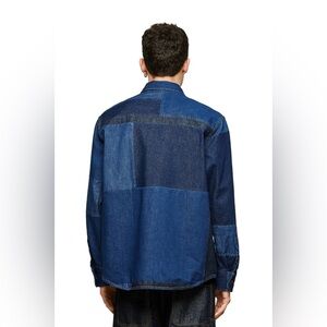 Patchwork shirt cut from fix cotton denim, in a tonal mix of lighter and darker washes. This regular-fit style fastens with branded metal shank buttons and is finished with tobacco-coloured stitching.