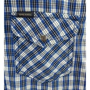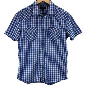 Diesel Pearl Snap Short Sleeve Western Shirt Men’s Size Medium Blue Plaid