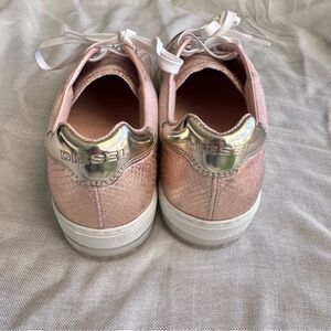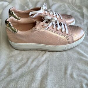 Diesel, pink, rose gold, metallic, lace up, platform sneakers. Euro size 39. Light scuffing on midsole but no other signs of wear.