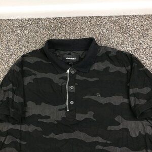 Diesel Polo Shirt Camo T Kal 1/4 Zip Short Sleeve Black Mens Large