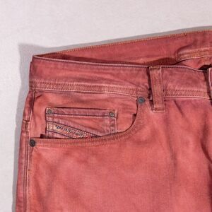 Diesel Safado Slim Straight Red Pigment Dyed Button Fly Stretch Jeans Mens 36x28