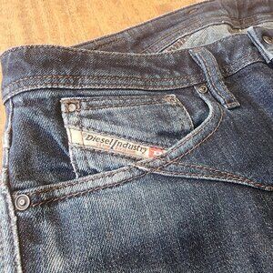 Brand details: "Diesel Industry Denim Division" coin pocket tag; DIESEL branded front button; DIESEL leather back patch; Diesel "Only The Brave" logo on size tag; printed Diesel Industry interior lining graphic