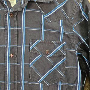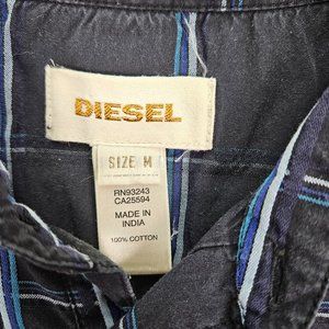 Diesel Shirt Pearl Snap Button-Down Pockets Men's Size M Black Blue Plaid Western