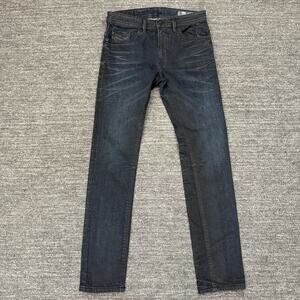 Diesel Thommer Jeans Mens 31x32 Slim Skinny Stretch Whiskered Dark Wash Denim