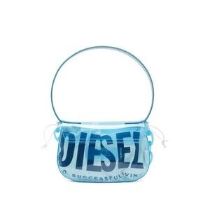 The Diesel translucent rectangular bag epitomizes modern elegance with its glossy silk and nylon composition. Defined by its structured silhouette, this statement piece features a prominent logo print and a sleek shoulder strap alongside a chunky chain handle, all in a complementary translucent blue. Ideal for day-to-night transitions, this bag seamlessly combines practicality with bold aesthetics.