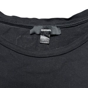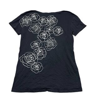 Vintage Y2K Diesel black tee featuring minimalist white rose graphics on the shoulders and hem. Soft, fitted cotton with that perfectly worn-in 2000s feel. Easy to style with low-rise jeans or a mini skirt for that true early 2000s look.