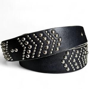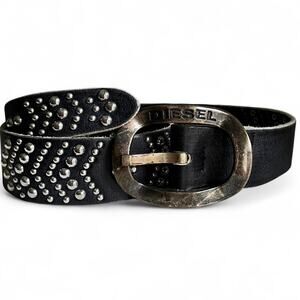 Diesel Vintage Studded Leather Belt Black Silver Logo Buckle Size 34 Made Italy
