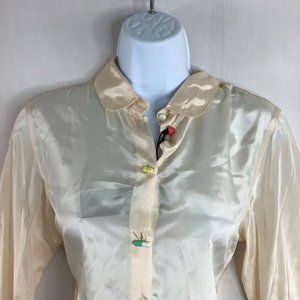 Diesel Women's Ivory Classic Long Sleeve Club Collar Button Up Casual Shirt XXS
