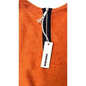 Diesel Women’s Orange Mohair Blend V-Neck Back Zip Pullover Sweater Size S