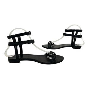 Diesel Women's Size 37 US 7 Black Gladiator Flat Sandals Braided Ankle Strap