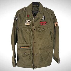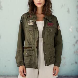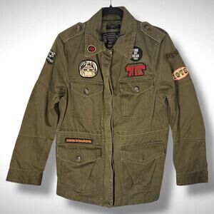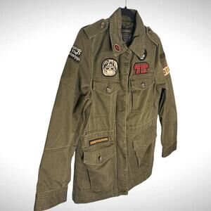 Diesel Women's Size XS Military Patch Badge Jacket Olive Green Utility Coat