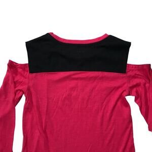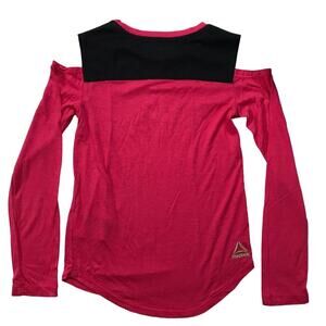 *Reebok - cold shoulder, mesh neckline, distressed "Reebok" logo front, rounded hem