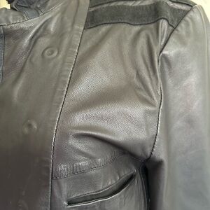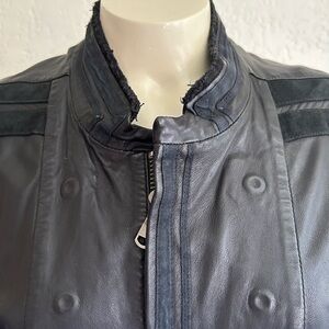 Diesel gold label black leather blazer Small. Measurements: underarm to underarm 19”, length 26”. Black leather. Pockets . Front zipper. Great condition, bin 67