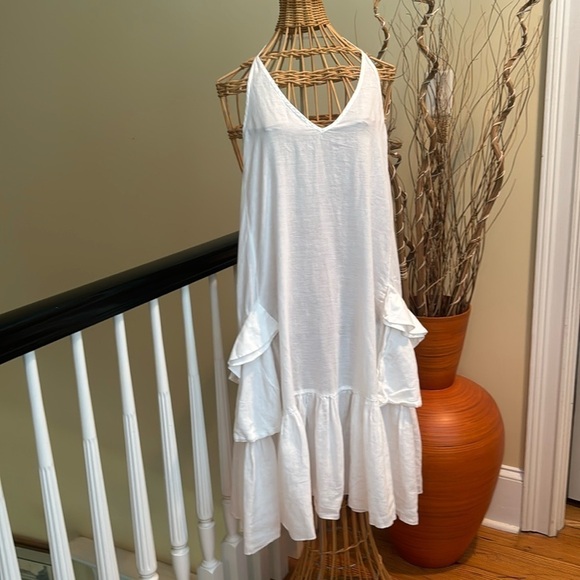 Has pockets. Signed above one pocket. You can see through it. So a slip would take care of that. Love this dress.