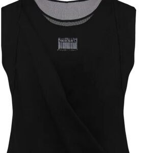 This short dress is made from a smooth Milano knit with a contrasting colour on the inside. The sleeveless silhouette features a draped back and a square neckline, with a visible stretch-tulle top underneath.