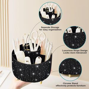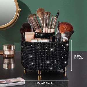 Diesisa 5 Slot Makeup Brush Diamond Black Cup 360° Rotating Makeup Brush Holder