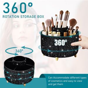 Premium Material Swivel Makeup Brush Holder:The Swivel makeup brush holder is made of durable Premium plastic, which ensures its durability and security from injury and breakage. And the smooth surface and rounded edges won't cause any harm to your desk or yourself.Cosmetic storage box requires no installation and can be used directly.