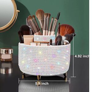 Diesisa 5Slot Makeup Brush Diamond White Cup 360° Rotating Makeup Brush Holder