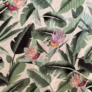 Dieter Braun x H&M. Top and matching shorts in soft 100% organic cotton jersey with a vibrant printed pattern inspired by nature with leaves and hummingbirds. Top with narrow trim at neckline, heavily dropped shoulders, and flutter sleeves. Shorts with covered, elasticized waistband and flounced-trimmed hems with overlocked edges.