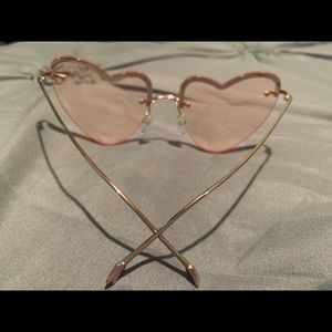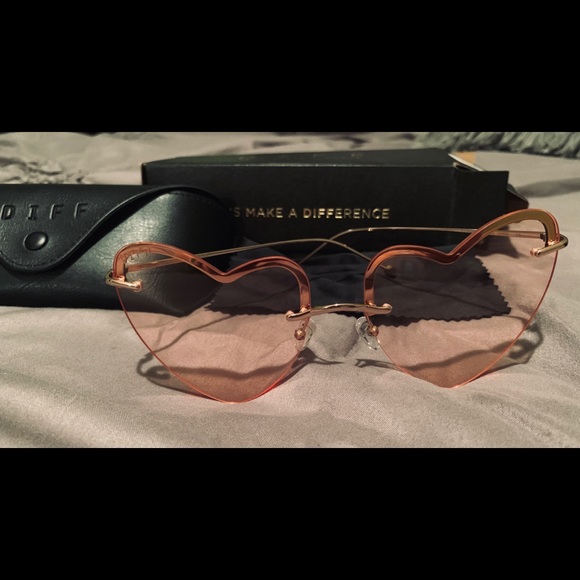 Brand New! The lenses are transparent pink the color is called Champagne gold, heart ❤️ shapes lenses no scratches or imperfections never worn, the arms have an arrow on the end of eight side, very cute! There sold out on Diff website.