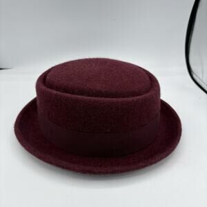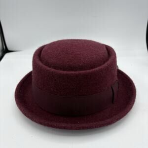 Different Touch Hat Womens Size XL 7 1/2 Wool Fedora Burgundy Ribbon Tie