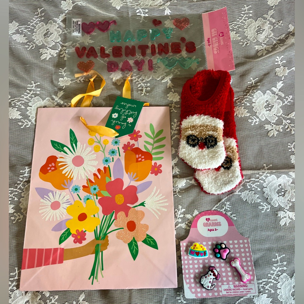 Celebrate Valentine's Day with these charming Wondershop bags, featuring a delightful pink and red color scheme. Perfect for gifting, these accessories add a touch of love and festivity to any occasion. Ideal for carrying small gifts or treats, they are a must-have for the holiday season. All new with tags. One charm has some rubbing one of the charms