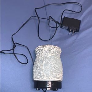 Pale blue marble stone like diffuser, three pieces, fades into different colors or stays at the color you set, colors: white, purple, pink, red, yellow, green, and blue