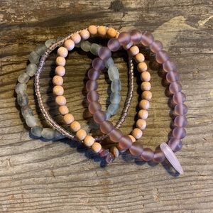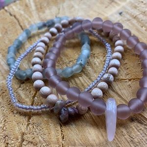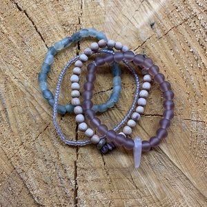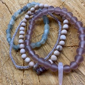 Brown Natural Wood Bead + Lavender Frost Sea Glass Bead + Grey Mist Recycled Glass Bead + Crystal Brown Czech Glass Bead
