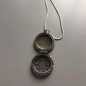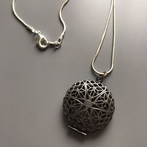 Beautiful antique silver plated diffuser necklace. Will include 3 diffusser pads. Just add your own essential oils.