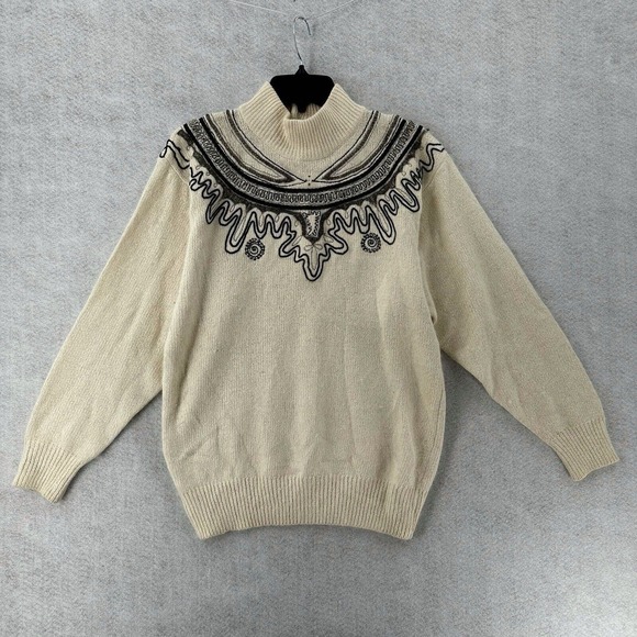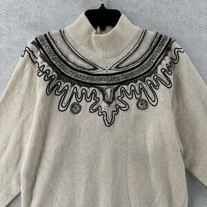Diffusion Sweater Womens MED Ivory Southwestern Fair Isle Angora Silk Turtleneck