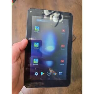 This listing is for a DigiLand DL701Q 7-inch Android tablet in black. Model DL701Q, FCC ID XMF-MID713. The tablet is in used condition with surface scratches and signs of wear (see photos). It powers on and functions, but may require charging before use.
