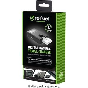 Refuel your camera's battery in just 1 hour with this DigiPower RF-TC-55N travel charger, which is compatible with most Nikon camera batteries. A European wall plug and USB port offer flexible connectivity options.