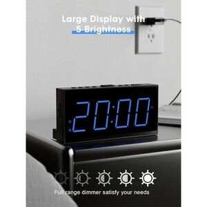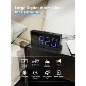* LARGE DIGITS & 5 LEVELS ADJUSTABLE BRIGHTNESS - 7.5 inch large LED display digital clock with blue digits make it easy to read the time. And dimmer button on the top can easily adjust the brightness of the display in different environments.