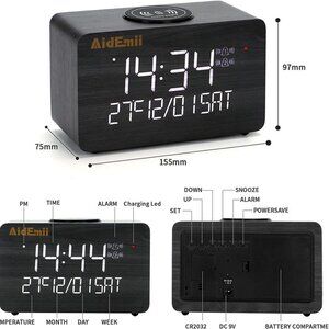 【Wireless Charging & Phone Camera Protection】AidEmii digital alarm clock is built-in QI Wireless Charging, you can place your smartphone on top it for quick charging.